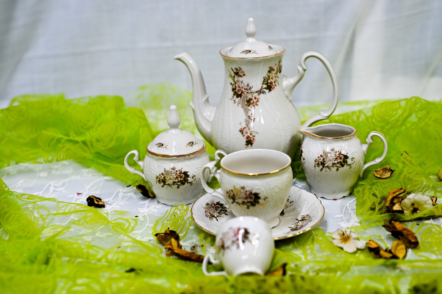 סט קפה ותה - מעוטר בפרחים עדינים, תוצרת אירופה, צ׳כיה