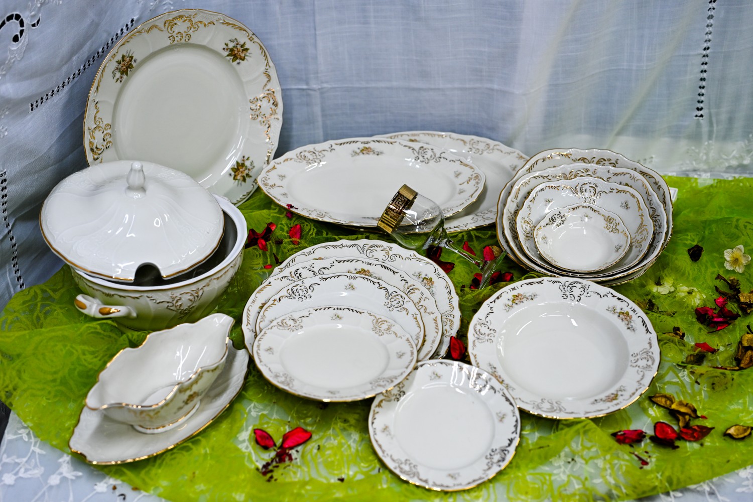 סט קלאסי מהודר - בתוספת עיטורי פרחים, תוצרת צ׳כיה