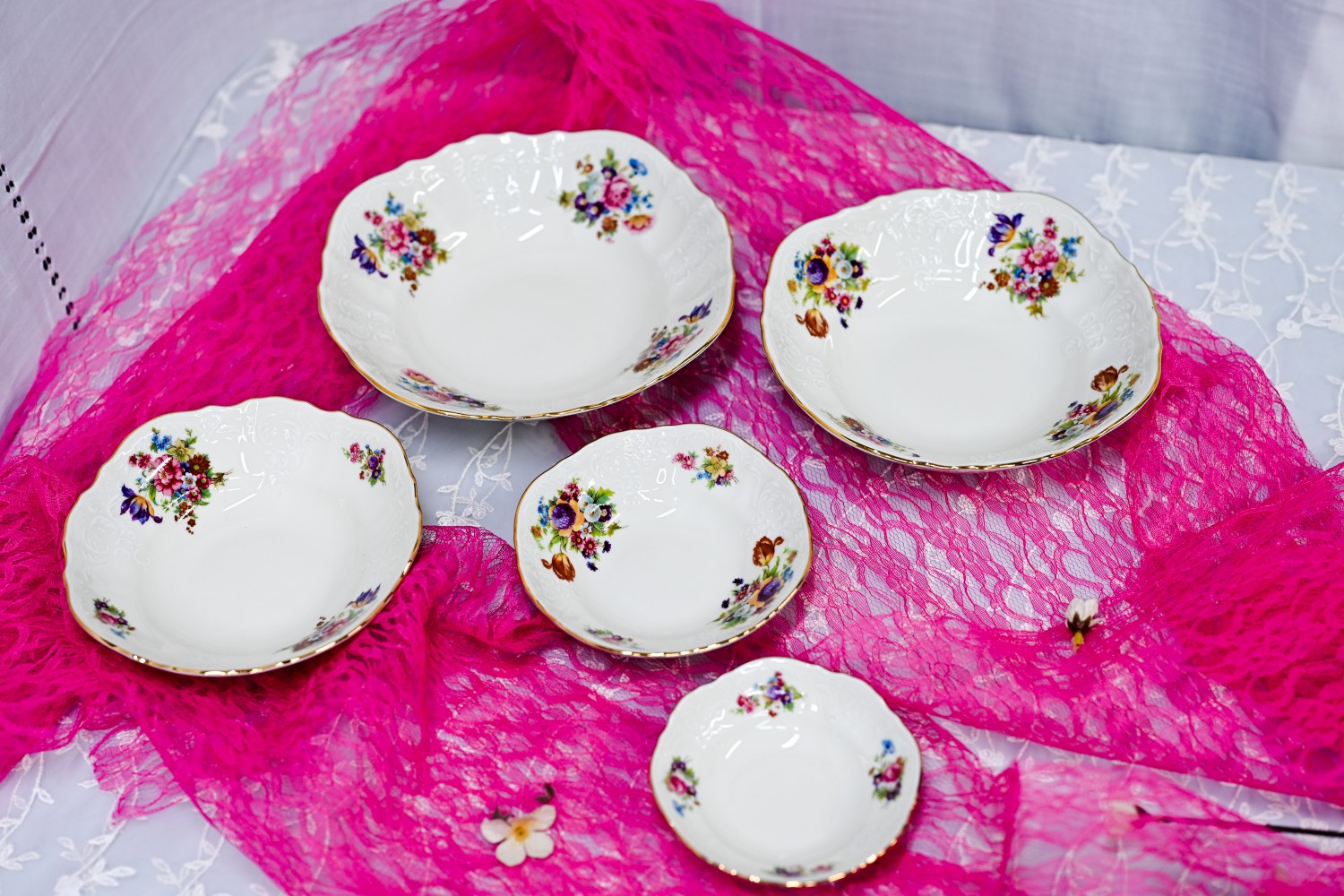 קערות בגדלים שונים - סט קלאסי, חגיגיות, מעוטרות בפרחים צבעוניים, מבית ספק, תוצרת צ׳כיה
